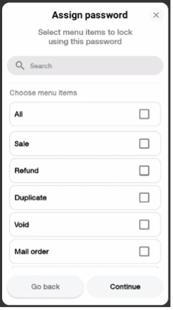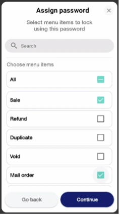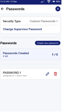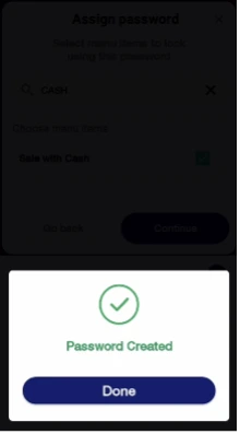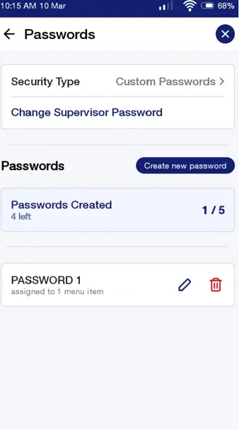 Note: Each menu item can have just ONE Custom Password assigned.